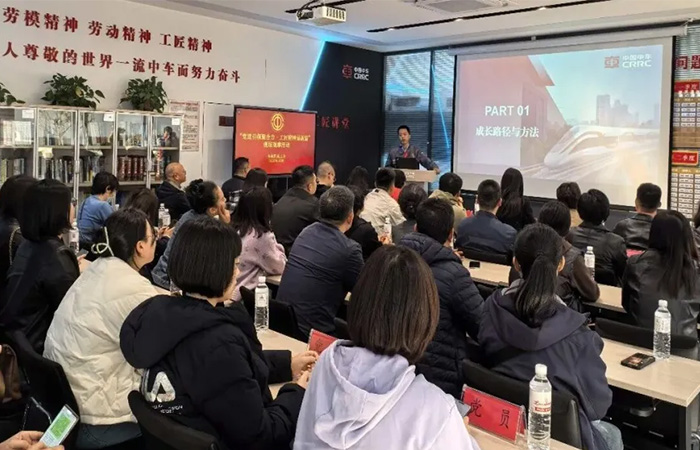 活动首站走进中车青岛四方机车车辆公司,“弘扬工匠精神主题课程”成为全场焦点。齐鲁大工匠、电焊工特级技师、中国中车首席技能专家张合礼,以《新时代产业工人的成长与使命》为题,用亲身经历解读“工匠精神”的内核,从技能突破到使命担当,从个人成长到团体奋进,为党员们送上一堂生动的党课。授课后,大家实地参观国家级技能大师工作室,近距离感受精密制造背后的匠心坚守。