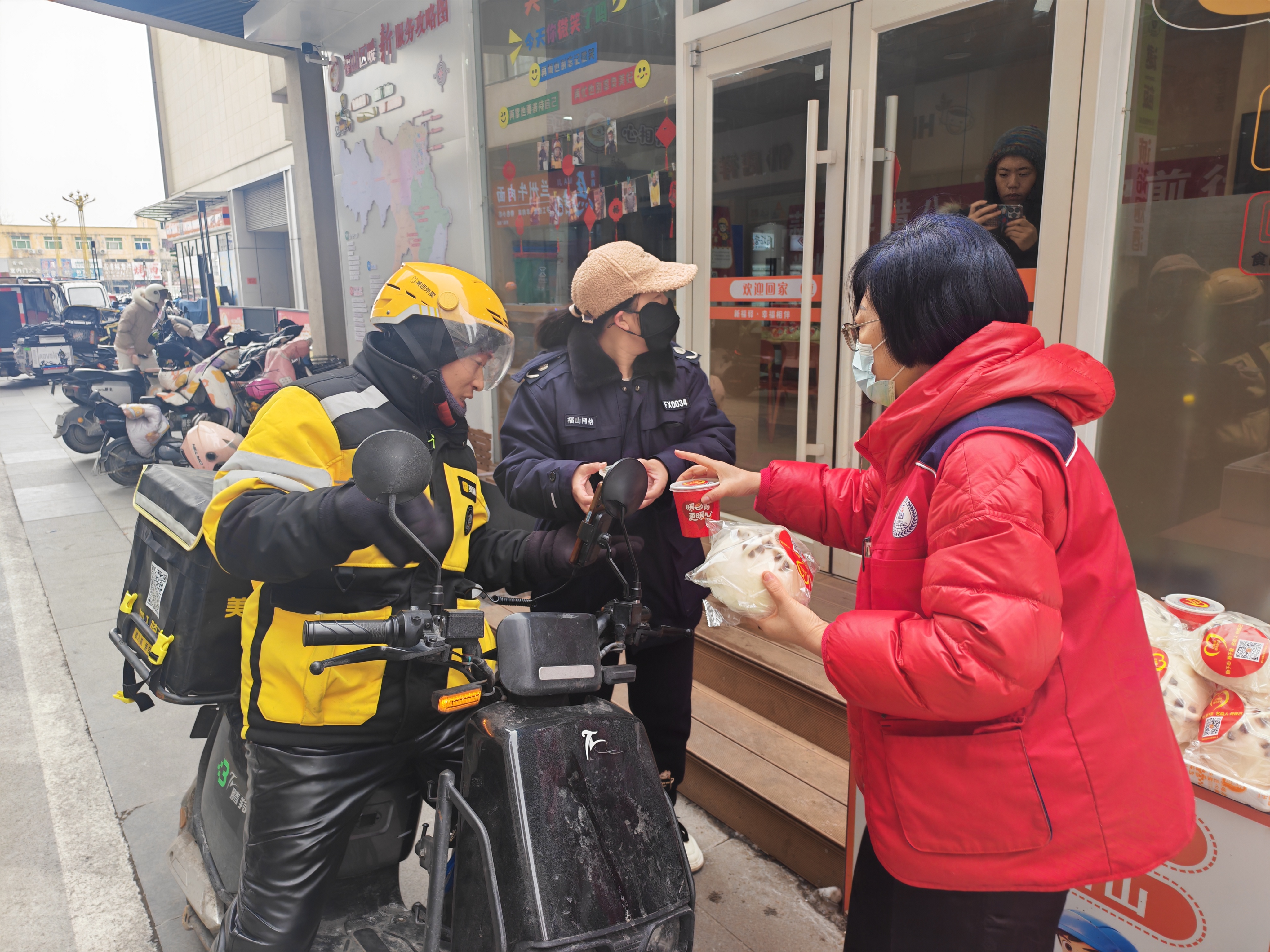 在外卖站点为户外劳动者送上腊八粥 王颖 摄