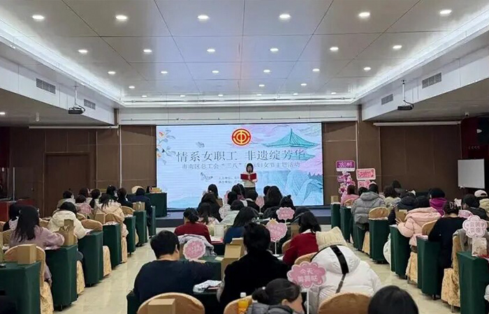中工网讯 近日,由山东省青岛市市南区总工会主办、江苏路街道总工会承办的“情系女职工·非遗绽芳华”主题活动在中国海洋大学学术交流中心启幕。来自全区各企事业单位的100名女职工代表欢聚一堂,在普法学习、非遗手作与健康关爱中度过了一个充实而有意义的下午。