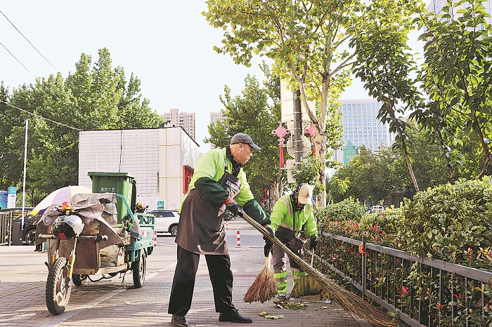 晚上9点,一家人沙沙的扫帚声在寂静的街道上格外清晰,晚风卷落的落叶在两代人的娴熟动作下渐渐聚拢成堆。“父母每天早出晚归,不只为了帮他们减轻负担,也是为了陪他们聊一聊家长里短。”李胜海的儿子说。